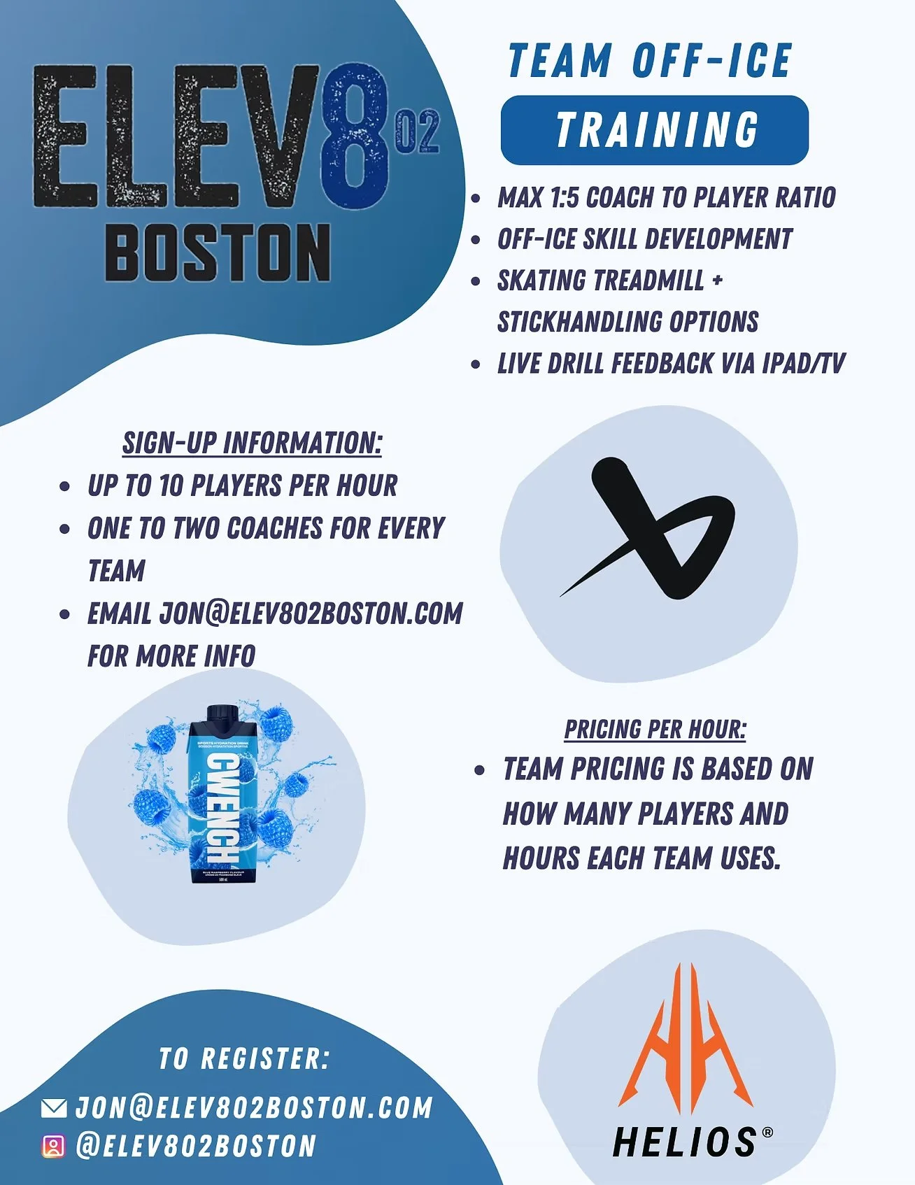 Experience personalized coaching with your own team. In all off-ice sessions ELEV802 Boston focuses on comprehensive player development, nurturing skills and fostering growth in your game. Our programs are tailored to maximize your potential and elevate your performance.